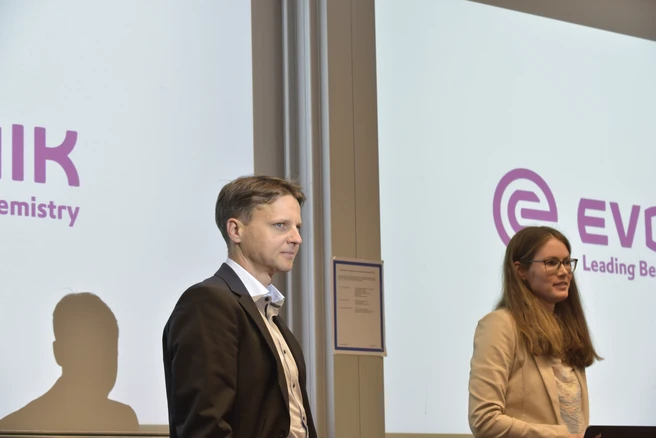Prof. Richard Fischer (TUM) opened the event with a warm welcome to the many guests present both in the lecture hall and online. Together with Dr. Christoph Weckbecker (Evonik) and Prof. Tom Nilges, Head of the Department of Chemistry, he emphasized the importance of dialogue between industry and academia in fostering sustainable innovation.