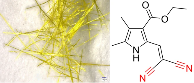 - Verbindung D „Grom B30“ – ein symmetrisches Bi-Pyrrol, das nicht nur interessante photophysikalische Eigenschaften besitzt, sondern auch ein Ligand für metallorganische Farbstoffe sein kann.