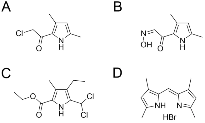 - Verbindung C „Friedrich A27“ – ein chlorierter Pyrrolester, der für Kondensationsreaktionen von großer Bedeutung war.